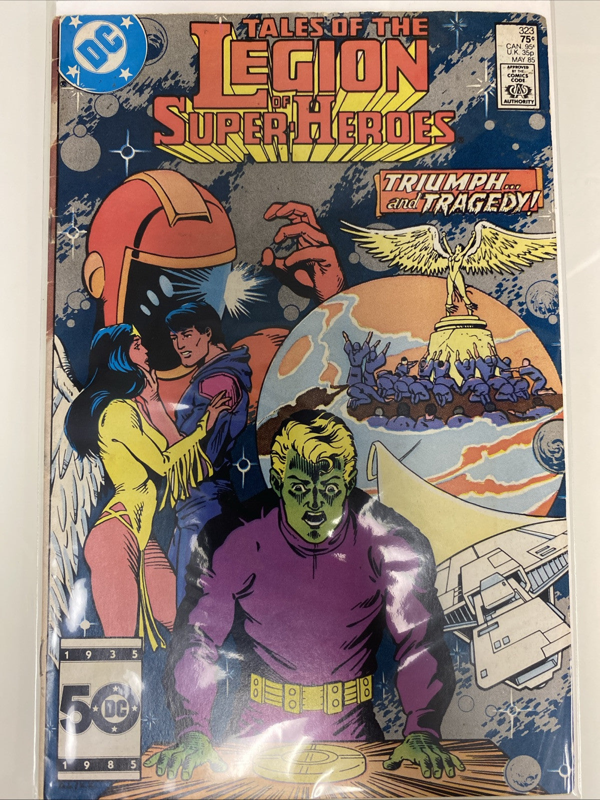 The product is a comic book titled "Tales of the Legion of Super-Heroes #323" published by DC Comics in May 1985. This particular issue features a character known as Box and is categorized as a Newsstand Variant in the US Comics tradition. The comic book belongs to the superhero team Legion of Superheroes and falls within the Copper Age era of comic book publishing. This collectible item is part of the ongoing series "Tales of the Legion of Super-Heroes."